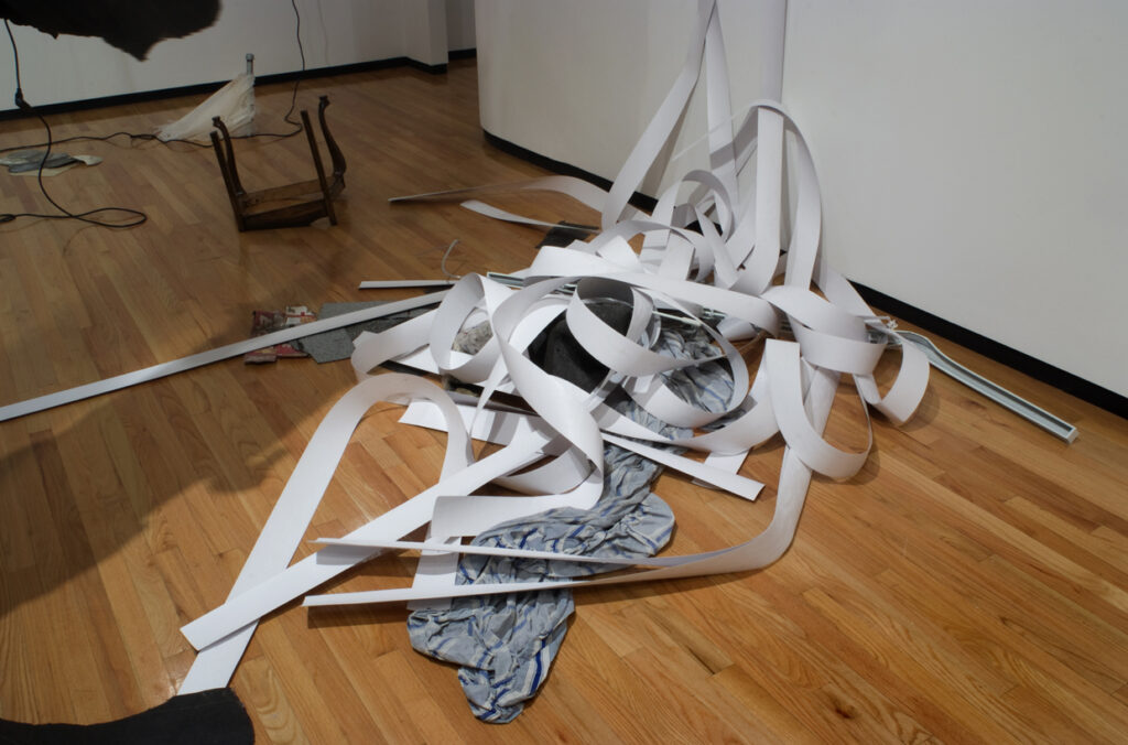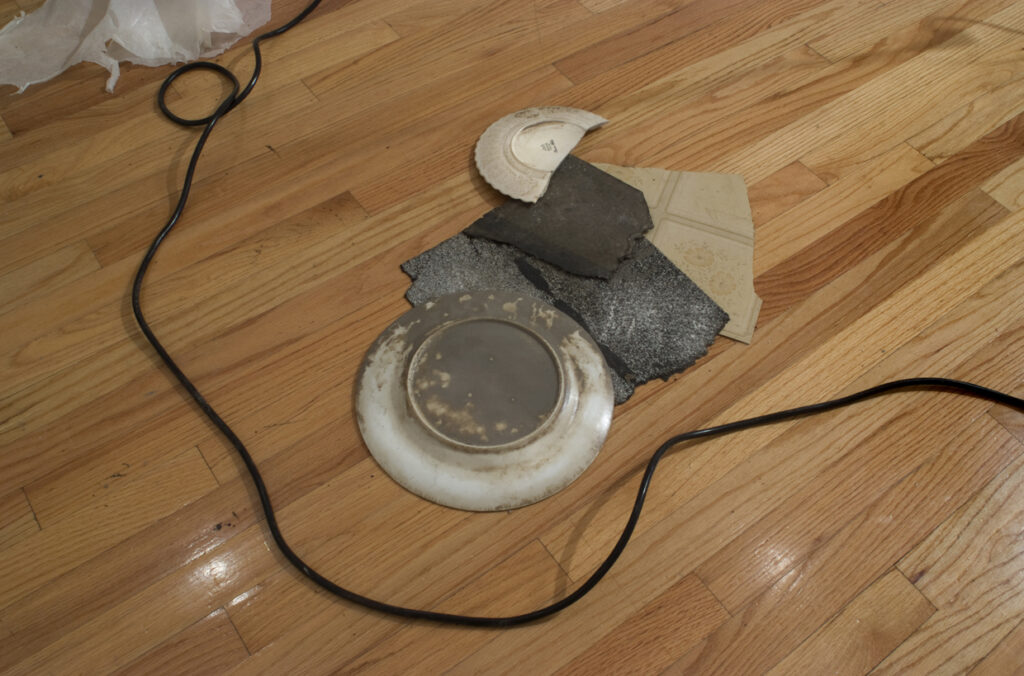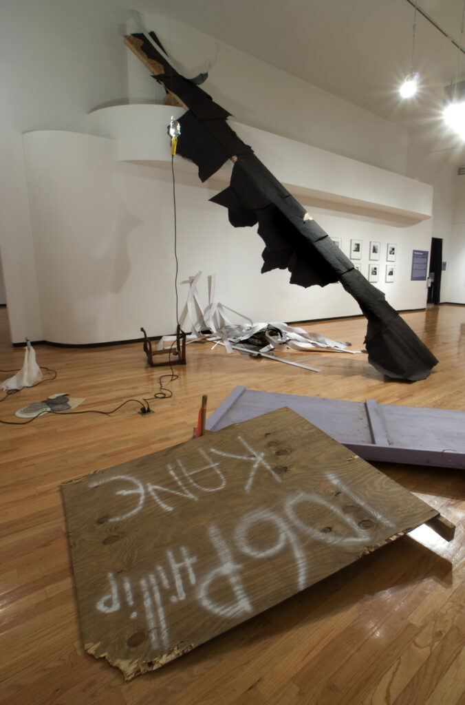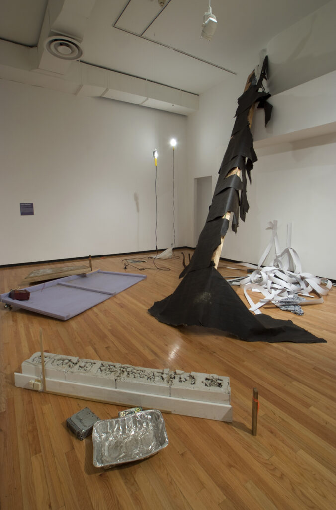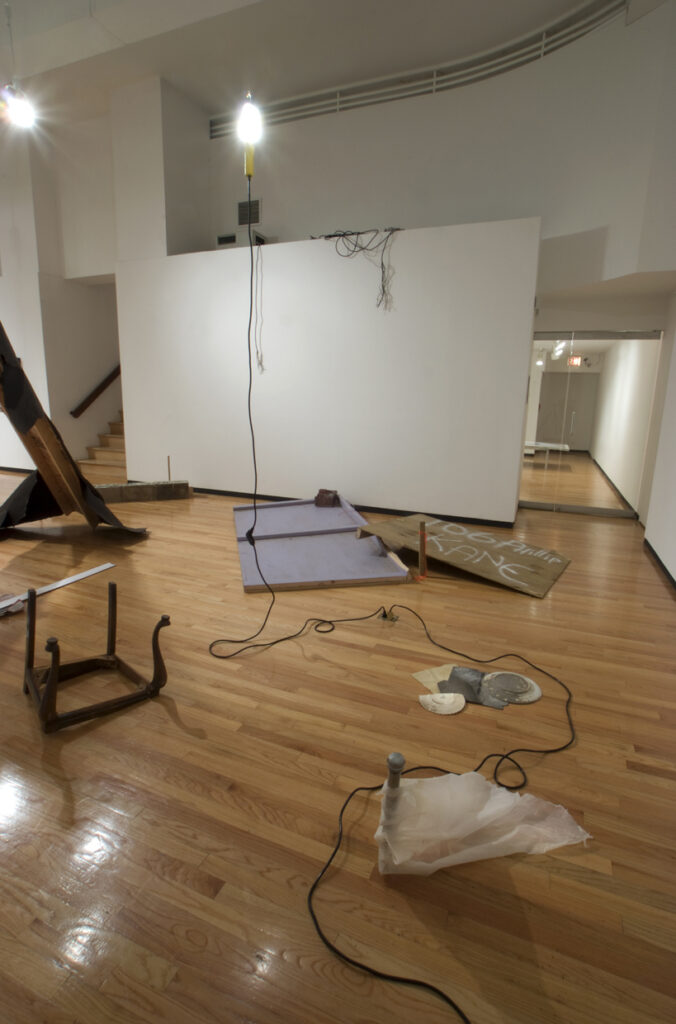 Debris Field, left her wondering when it would, 2009 // mixed media installation with light and new or fabricated items treated with various processes that shape, tone, distress, and encrust // dimensions variable // “Photodimensional”, Museum of Contemporary Photography, Chicago