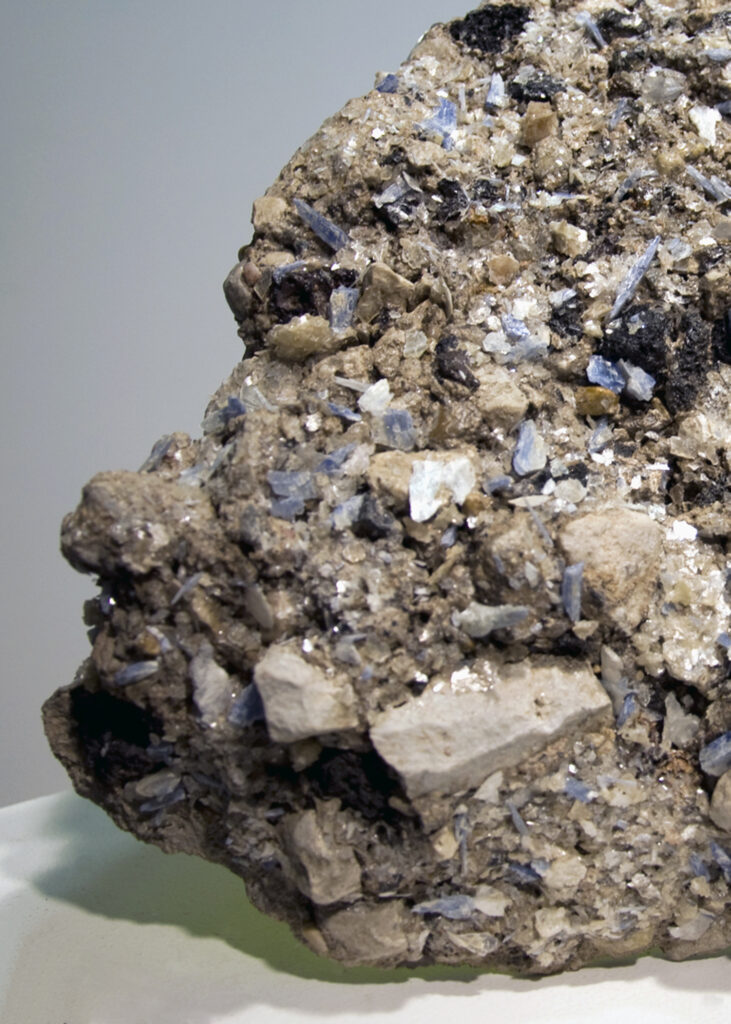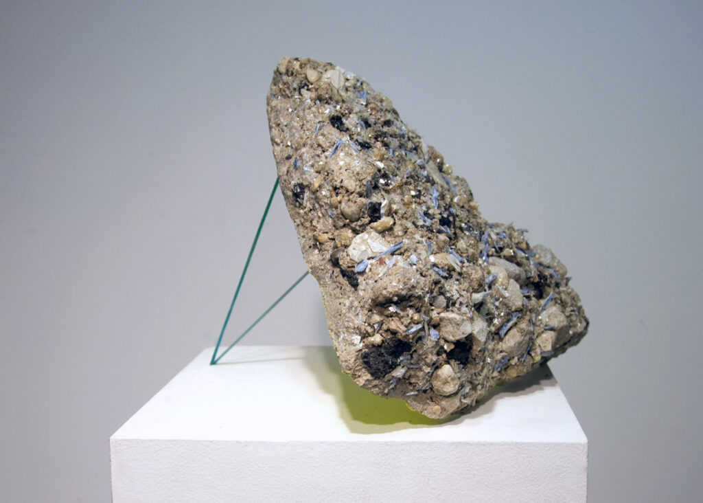 Sidewalk Prophet, 2016 // star mica, kyanite, sidewalk remnant, acrylic, enamel // 12 x 10.5 x 11″