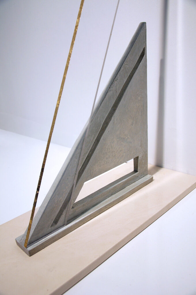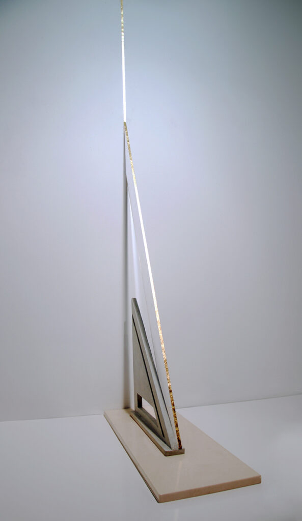 Crepuscular Beam, 2017 // acrylic, gold leaf, wood, modified plaster, travertine // 28 x 10″ x variable height (to ceiling)