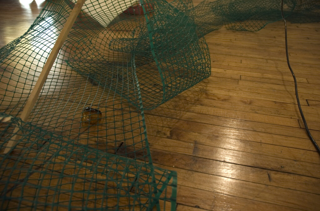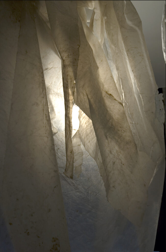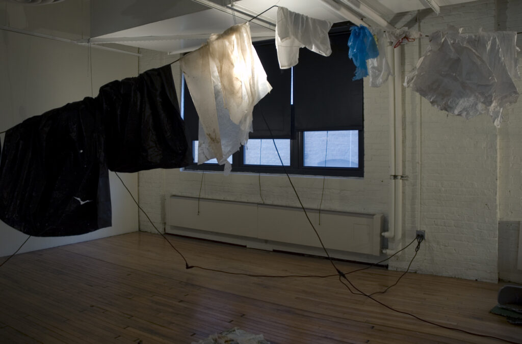 Debris Field, to the window as she held fast to his collar, 2007 // mixed media installation using new or fabricated objects, altered and distressed, and lighting